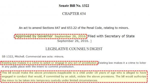 Hace un par de días destacamos algunas de las nuevas leyes ridículas del estado que entrarán en vigor en todo el país a partir de hoy (ver “Aquí están algunas de las leyes del estado de nuevo ridículo que tendrán efecto el 1o. de enero – feliz año nuevo!”). Y aunque había un montón de locura observado en el correo, al parecer nosotros pasamos por alto uno de los logros más finos de California de 2016, es decir, la legalización de la prostitución infantil.