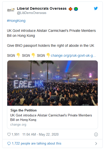 Hong Kong fue durante mucho tiempo parte de China. Debido a un contrato de arrendamiento de 99 años celebrado en 1898 con el Reino Unido, se consideraba una colonia británica. Pero ese contrato de arrendamiento terminó. Algunos en el Reino Unido desean extender el derecho a ser británicos a los de Hong Kong, presumiblemente para que puedan abandonar ese territorio. Hong Kong no tiene los mismos lazos con los Estados Unidos.