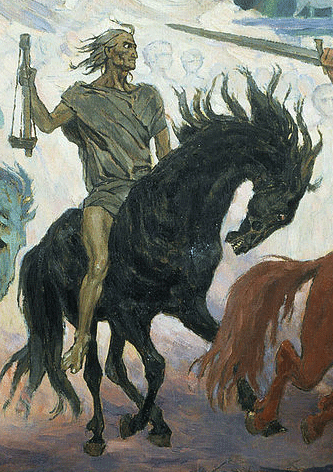 5 Cuando abrió el tercer sello, oí al tercer ser viviente que decía: “¡Ven!” Y miré y he aquí un caballo negro, y el que estaba montado sobre él tenía una balanza en su mano. 6 Y oí como una voz en medio de los cuatro seres vivientes, que decía: “¡Una medida de trigo por un denario, y tres medidas de cebada por un denario! Y no hagas ningún daño al vino ni al aceite.” (Revelación 6: 5-6)