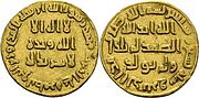 Dinar de oro del califato Oméyida del siglo 7o.