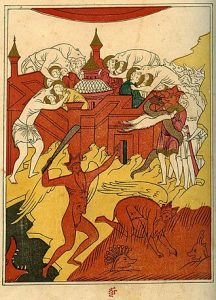 Retrato del siglo XVII con el diablo impulsando la guerra de Gog y Magog