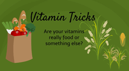 Durante décadas, la industria de la salud “natural” ha estado promocionando miles de suplementos vitamínicos. La verdad es que la mayoría de las vitaminas en los suplementos están hechas o procesadas con derivados del petróleo o azúcares hidrogenados, por lo tanto, son sintéticas. A pesar de que a menudo se les llama naturales, la mayoría de las vitaminas no alimentarias son sustancias aisladas que tienen una estructura cristalina. Las vitaminas naturalmente en los alimentos no son cristalinas y nunca están aisladas. Las vitaminas no alimentarias son aislados, lo que significa que son sustancias químicas individuales que carecen de las sustancias que contienen los alimentos reales. Las vitaminas que se encuentran en cualquier alimento real son química y estructuralmente diferentes de las que se encuentran comúnmente en las fórmulas de “vitaminas naturales”. Las vitaminas alimentarias contienen una matriz de sustancias que mejoran la biodisponibilidad y la seguridad. Dado que son diferentes, las personas orientadas a la naturaleza deben considerar las vitaminas no alimentarias como análogos vitamínicos (imitaciones) y no como vitaminas en realidad. Ya sea que se vendan al por menor o al por mayor, casi todas las empresas venden vitaminas sintéticas.