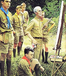 Pintura del grupo Boy Scout por Norman Rockwell