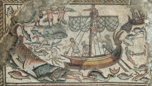 Un mosaico que representa a Jonás siendo tragado por un pez. (Jim Haberman, Cortesía de UNC-Chapel Hill)