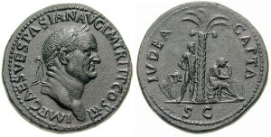 Después de que Tito conquistó Jerusalén en el año 70 D.C., el emperador Vespasiano emitió monedas -la parte de atrás de las cuales muestra los judíos conquistados: