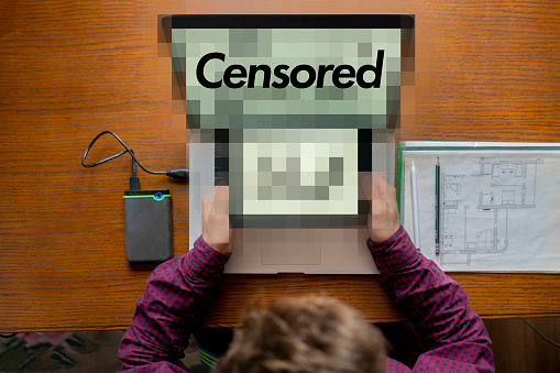 the modern device gadget screen censored, covered by pixels blur