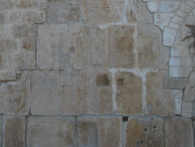 Se cree que los ladrillos originales (los más grandes de arriba, llamados también ashlars) fueron no sólo parte del edificio de la primera iglesia cristiana (que era llamada una sinagoga entonces), sino que ellos también pueden haber procedido del segundo templo en Jerusalén.