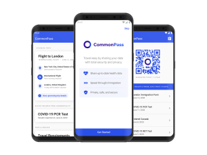Pase común: Creado por Commons Project, este pase de Salud ha estado en uso internacional desde octubre en vuelos de United y Cathay Pacific entre Nueva York, Londres, Singapur y Hong Kong. Common Pass funciona a través de la aplicación de salud de Apple en iOS y CommonHealth para Android. Se conecta a 230 sistemas de salud de los Estados Unidos. Funciona como un código QR escaneable y puede almacenar datos de pruebas o vacunas y planes de viaje de un pasajero. (Todavía no está disponible públicamente para su descarga.)