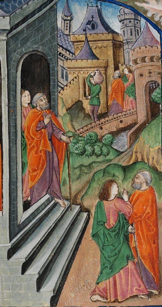 Representación artística de Pedro y Juan preparándose para la Pascua