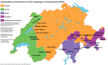 Suiza (coloreada de acuerdo a la lengua predominante, Marzo Zanoli)